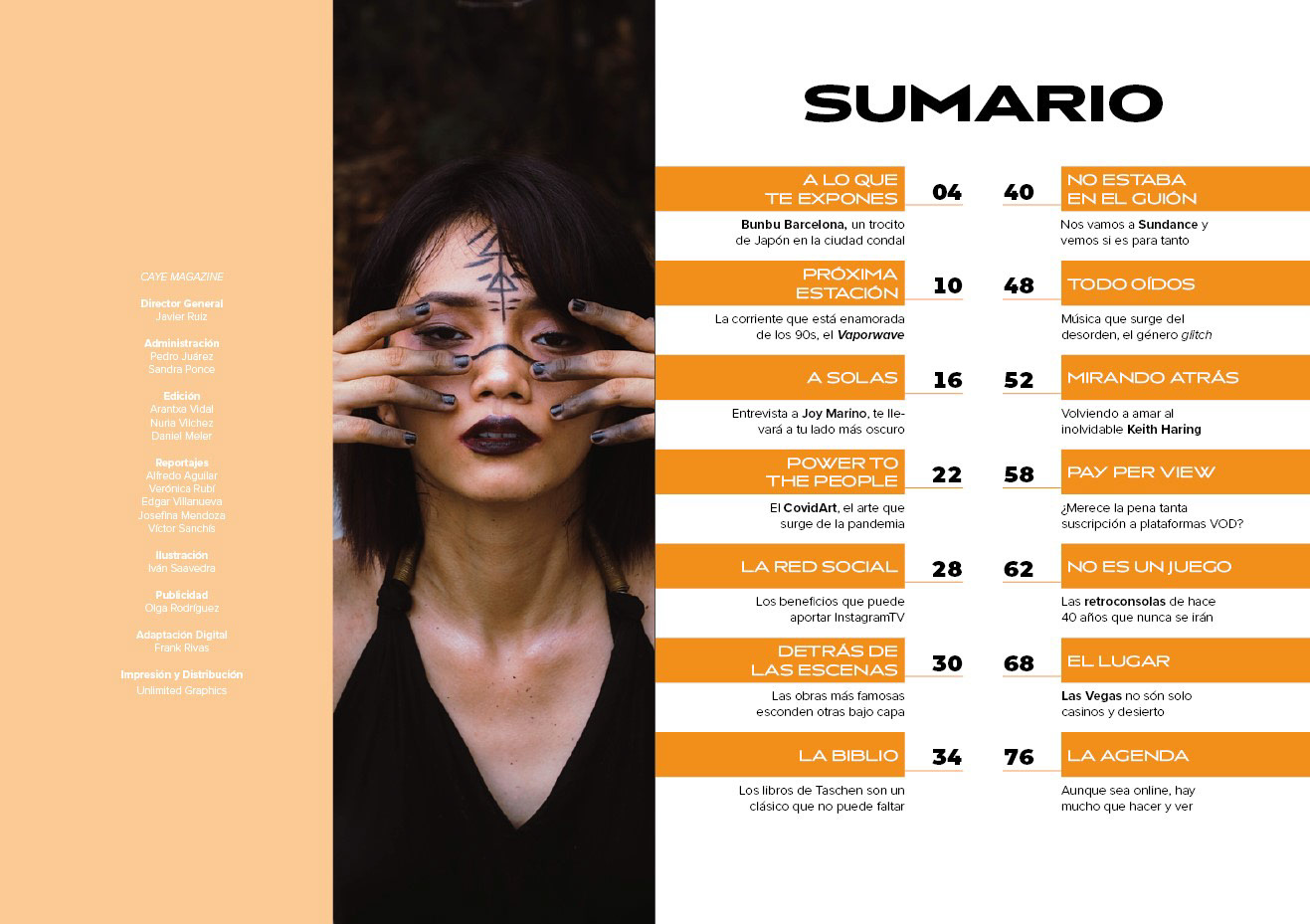 Revista de tendencias con enfoque contemporáneo. Proyecto editorial multiplataforma que incluye revista impresa, adaptación digital y sistema de suscripciones. Maquetación experimental que equilibra modernidad visual con legibilidad óptima.
